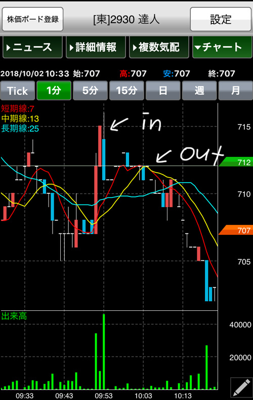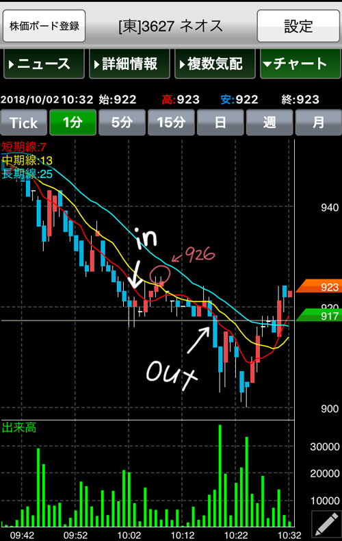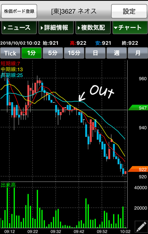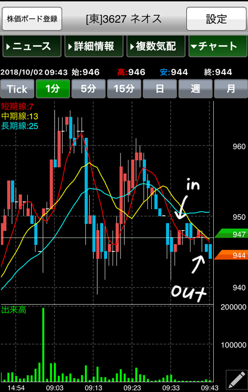 ネオスさん、リバウンドがくるかな~と思って948でinしたもののあまり動かなかったので947でoutしました。